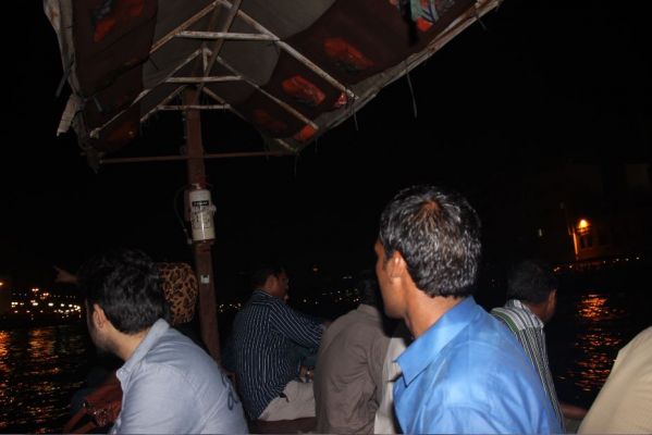 Die Überfahrt auf dem offenen kleinen Boot war ganz witzig, wenn man nicht aufpasste, wurden die Füße mit Wasser überspült, denn auf dem Fluss herrschte reger Verkehr und die Wellen schwappten immer mal über die quasi nicht vorhandene Bordwand. Es gelang uns aber, trockenen Fußes die andere Seite zu erreichen. Auch hier folgten wir einfach dem Menschenstrom Richtung Souq. Allerdings hatte zu meiner großen Enttäuschung der Gewürzsouq geschlossen, obwohl es gerade erst kurz nach 18.00 Uhr war. Wahrscheinlich hing das mit dem Eid-Fest zusammen, denn normalerweise soll der Souq bis 22.00 Uhr geöffnet sein. Der Goldsouq war offen, war aber etwas enttäuschend.