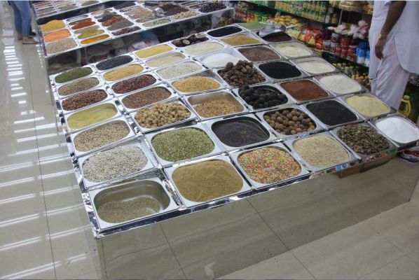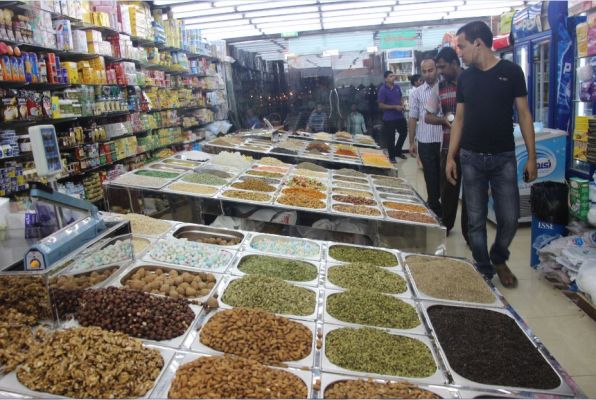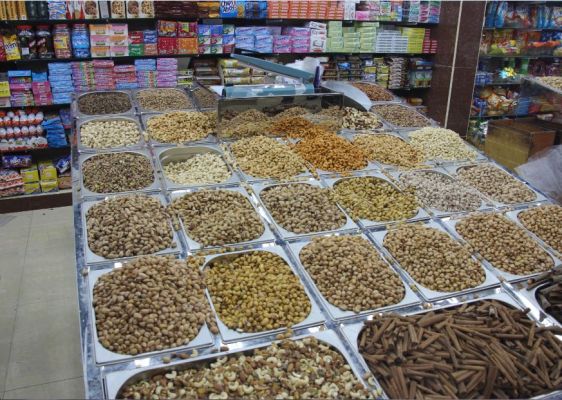 Hier passierte es uns zum ersten Mal auf der gesamten Reise, dass man kein Englisch sprach. Da ich in dem Gewühl nicht wirklich einen Überblick hatte, wo wir hin mussten, fragte ich einen Angestellten des Marktes nach der Fähre zum Gold Souq und wurde nicht verstanden. Genauso erging es einer anderen westlichen Touristin, die in den Laden kam und nach Babynahrung fragte, auch sie wurde nicht verstanden. Unsere Getränke bekamen wir aber auch ohne viel Worte und weil die Auslagen so einladend aussahen, erstanden wir obendrauf noch eine große Tüte Pistazien.