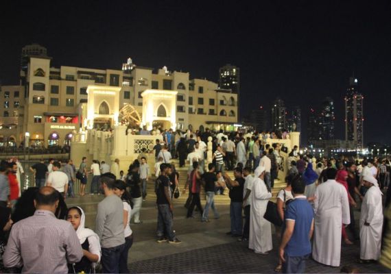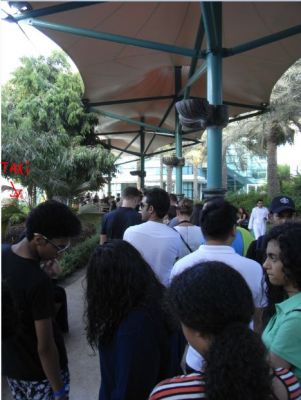 so dass wir uns schnell wieder verabschiedeten und uns auf die Suche nach einem Taxi machten. Das gestaltete sich nicht ganz einfach und hätte uns eine Warnung sein müssen, denn ganz Dubai war am heutigen Abend auf den Beinen. Schon lange vor der Mall war Stau und als wir in der Mall ankamen, trauten wir unseren Augen nicht. Menschenmassen soweit das Auge blickte. Alle 10 m standen uniformierte Sicherheitskräfte, die die Menschen lenkten, an den Rolltreppen waren so Spaliere in "S"-Form aufgestellt, wie vor Attraktionen in Vergnügungsparks, man musste sich da einreihen, um auf die Rolltreppen zu kommen. So macht Einkaufen keinen Spaß
