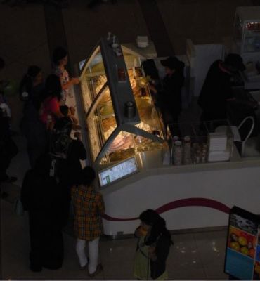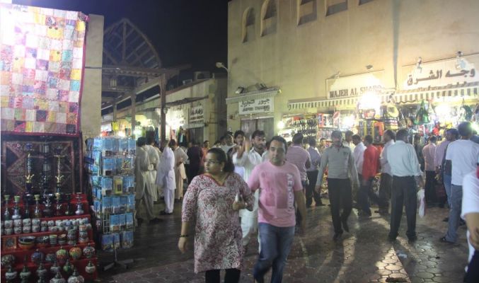 Wir kamen bei Dunkelheit an der Ghubaibah Station am Creek an und da heute der Höhepunkt des Opferfests war, war es voll, voller, am vollsten. Wir landeten in einem riesigen Bulk indischer oder pakistanischer Gastarbeiter, die beim Fähranleger eine Art kleine Kirmes mit diversen Buden und Verkaufsständen veranstalteten. Außer den paar Touristinnen, die mit uns auf der Fähre waren, waren weit und breit keine Frauen zu sehen. Wir kämpften uns durch die Männermassen und da wir Durst hatten, beschlossen wir in einem ganz ordentlich aussehenden und hell ausgeleuchteten kleinen Supermarkt schnell ein paar Getränke zu kaufen.