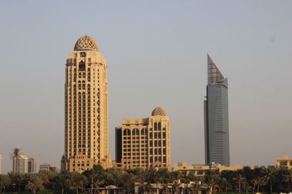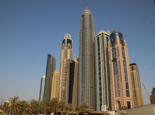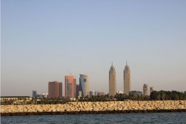 Die Fähre fährt aus der Marina raus an der Küste Dubais lang bis in den Creek hinein.
