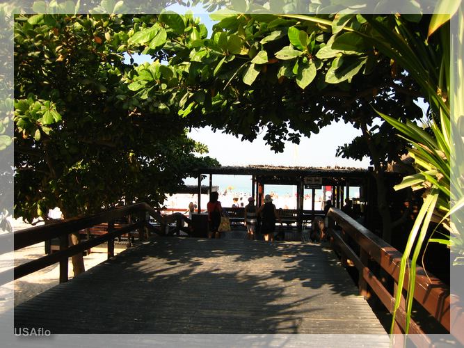 Über eine Holztreppe und Holzstege kommt man dann zum eigentlichen Strand.
