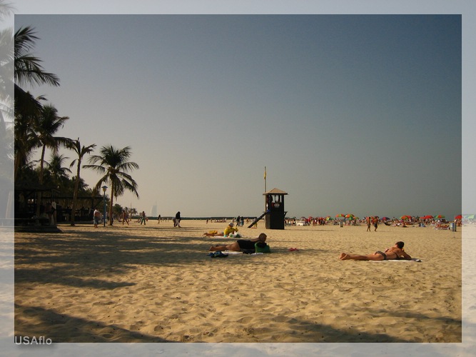 Diesen haben wir einen Vormittag besucht. Der Strand ist mit einem geringen Eintrittsgeld zu besuchen (5 Dirham= ca. 1 €). Bevor man zum Strand kommt, geht man noch durch einen kleinen Park, der wahrscheinlich einer der grünsten Stellen von Dubai ist.