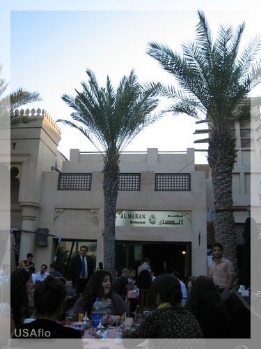 Wir hatten uns im Vorwege das Al Makan Restaurant zum essen gehen ausgesucht, welches kurz nach dem Eingang in den Souk rechts liegt. Von der Aussenterasse bietet sich ein schöner Blick auf das Madinat und das Burj al Arab.