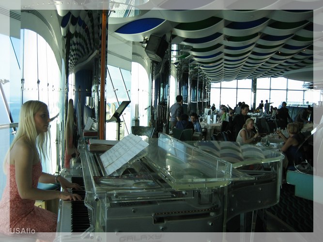 Bei schöner Pianomusik genoosen wir die Speisen und die langsam untergehende Sonne mit Blick auf Dubai und die Palme.