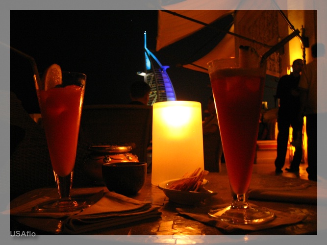 Auch dazu hatte ich im Internet von der im Hotel gelegenen Koubba Bar gelesen. Man muss in das Hotel zur Lobby gehen und von dort aus geht es zur Bar. Und wir wurden nicht enttäuscht. Bei einem tollen Blick auf das Burl al Arab liessen wir den Abend bei leckeren Cocktails (ca. 9 €) ausklingen.