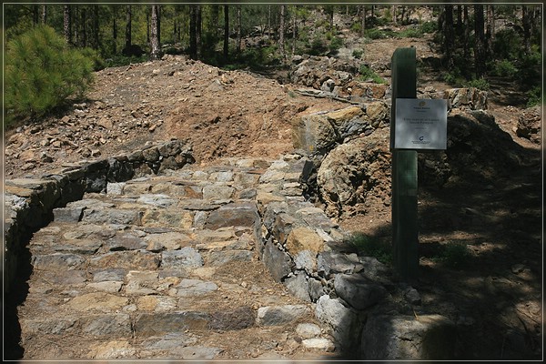 aufgenommen nach dem Überqueren der Staumauer des Presa de Lugarejos, der oftmals typische Beginn eines Wanderweges, der über ca. 3 m gepflastert ist, dient zu Erkennung des Beginns des Wanderweges zum Montaña de Tamadaba