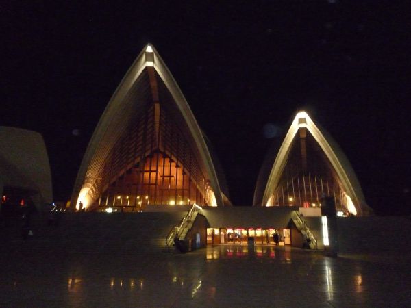 Das Opernhaus ist von innen und aus der Nähe betrachtet lange nicht so spektakulär wie seine Silhouette. 70er Jahre Architektur aus Beton – wenn wir ehrlich sind nicht wirklich hübsch. Aber sei‘s drum. Die Atmosphäre ist sehr nett, man zieht sich schon feiner an, aber es ist nicht total abgehoben. Etwas anderes hätte uns in Australien aber auch sehr verwundert.