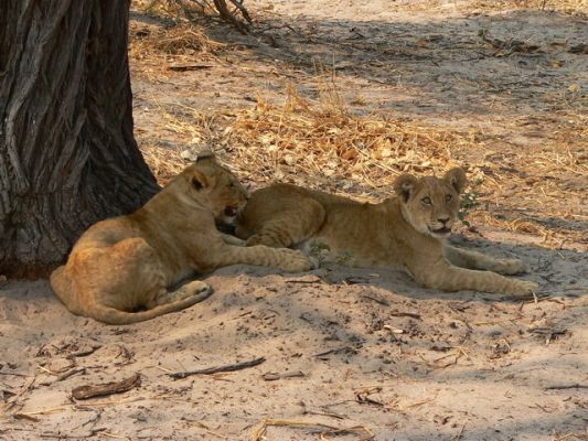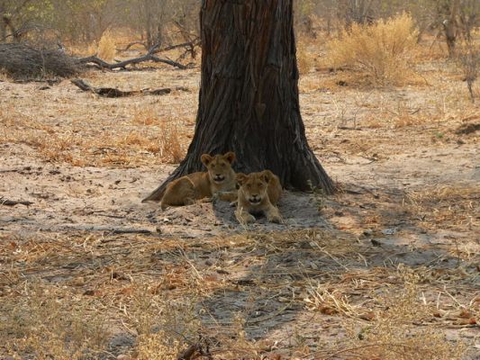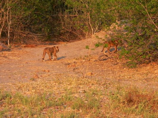 Die Höhepunkte sind zwei ca. 2-3 Monate junge Löwen, die sich allerdings schnell verziehen, als wir näher kommen