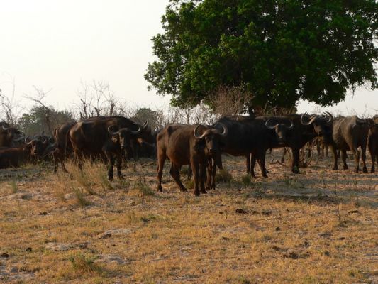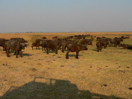 Die Zelte sind bereits aufgebaut, und wir ruhen uns bei Kaffee und Keksen aus. Beim anschließenden Gamedrive sind wir erstaunt, wie viele Büffel sich im näheren Umkreis unserer Zelte aufhalten. Schätzungsweise 300- 500 Tiere, beeindruckend.