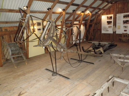In einer der Scheunen ist eine Ausstellung über die Bedeutung des Pferdes in der Holzwirtschaft