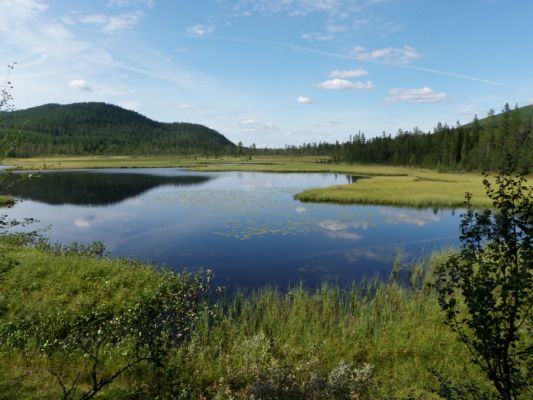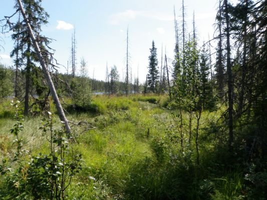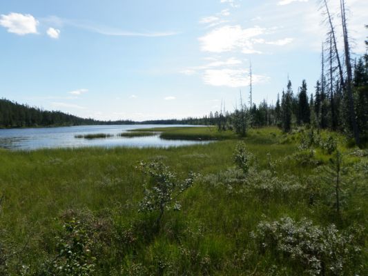 Hier bin ich beim Fotografieren der Gäste, wie sie durch den "Sumpf" marschieren.  Die Gamaschen trage ich nicht ohne Grund!! Allerdings muss man in Schweden keine Angst haben komplett im Sumpf zu versinken (hab jedenfalls noch nichts gegenteiligeres gehört   :grins: ), knie oder oberschenkeltief kann es allerdings schon mal werden.