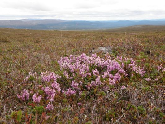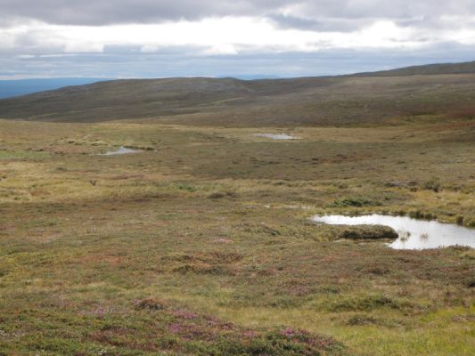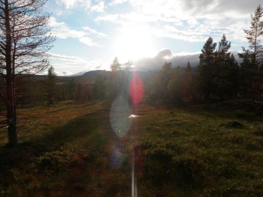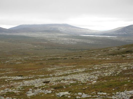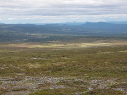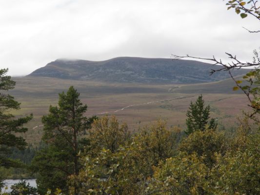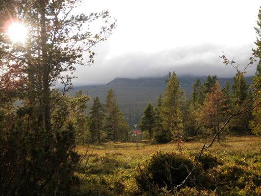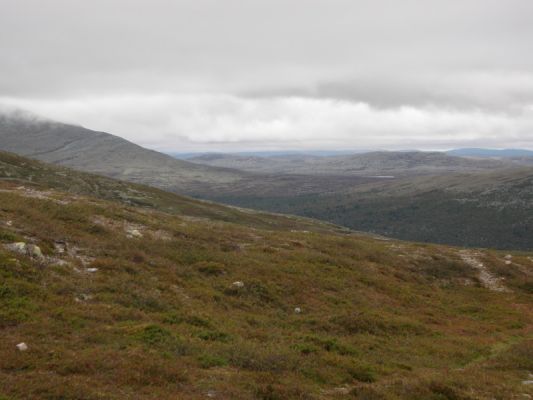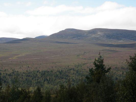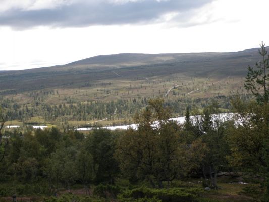 An der Baumgrenze öffnet sich uns ein schöner Blick nach Norwegen. Die beiden Hügelkuppen rechts im Bild umrunden wir morgen.