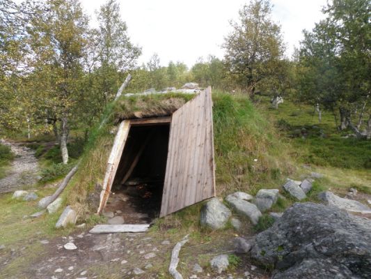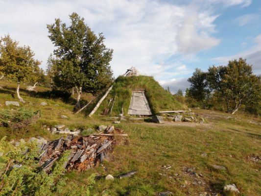 Unterwegs kommen wir an einer alten  Kåta vorbei, die inzwischen nur noch als Stall genutzt wird.