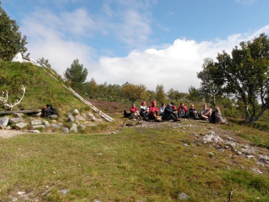 Während Peter in der Kåta das Feuer anmacht sitzen wir draußen im Sonnenschein und seine Helena erzählt uns etwas über Rentiere und deren Zucht. Es ist sehr interessant und die Gäste (ich ebenso) stellen auch noch viele Fragen. Wir erfahren, das Rentiere z.B. richtige Feinschmecker sind und gerne Pilze essen und die Geschlechter zu unterschiedlichen Zeiten das Geweih verlieren (M im Herbst; W im Frühjahr) und sie erzählt uns von den 8 Jahreszeiten der Sami.