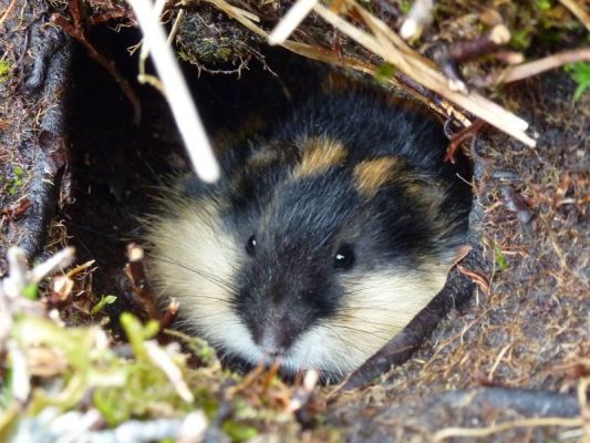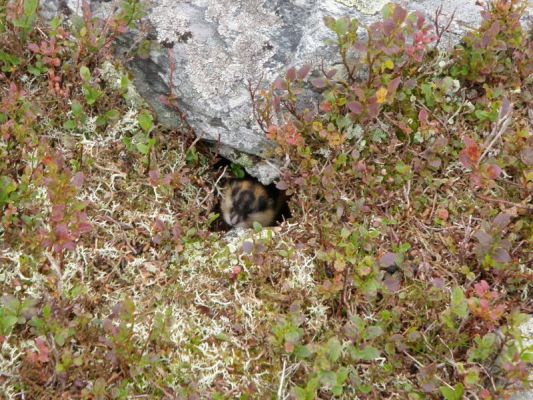 Bei der Querfeldein-Strecke finden wir Rentiergeweihe und Lemminge kreuzen unsere Wege. Hier habe ich endlich mal einen lebenden erwischt. Die sind unglaublich flink, aber der hier war zu neugierig.