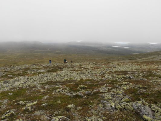 Es geht nach Norwegen... zu Fuß. Ein Glück, das wir ja nicht weit von der Grenze entfernt sind. Oben am Grövelsjön starten wir in die gleiche Richtung wie am ersten Tag, heute aber überqueren wir den Rentierzaun und danach die norwegische Grenze.