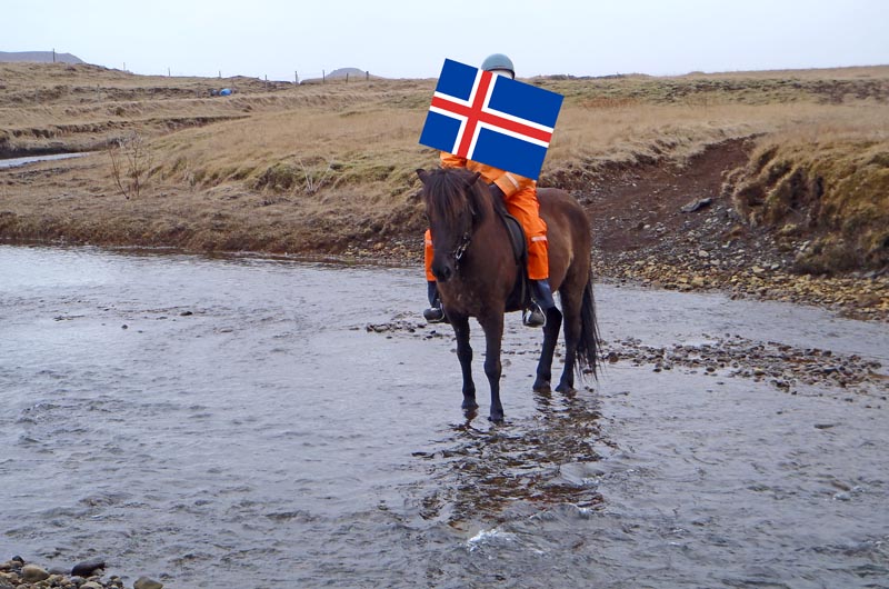 Leider regnet es wieder, aber die Sachen, die ich bekommen habe, sind tatsächlich wasserdicht, meine eigenen Sachen halten mich warm, und so macht mir der Regen nichts aus. Unter der Anleitung meiner Begleiterin versuche ich mein kleines dunkelbraunes Islandpferd zum Tölten zu bekommen, aber Mister X – wie ich ihn jetzt einfach mal nenne, weil ich den Namen vergessen habe – mag offensichtlich nicht tölten. Er mag Pass. In allen Geschwindigkeiten. Vom gemütlichen Schaukelstuhltempo bis zur Vorstufe vom Rennpass, wir testen alles durch, und ab und zu schwingt Mister X die Hufe auch im frischen Galopp. Nur mit dem Tölten klappt es auf dem zweieinhalbstündigen Ritt nur ein paar mal für ein paar Meter.