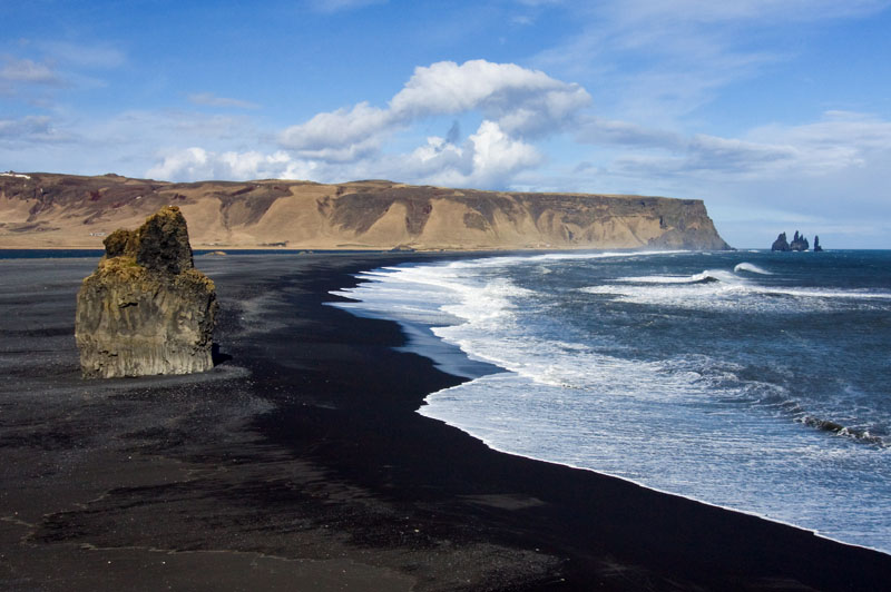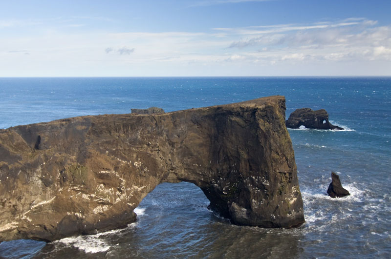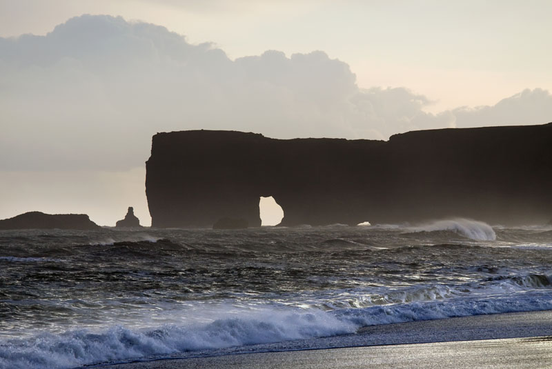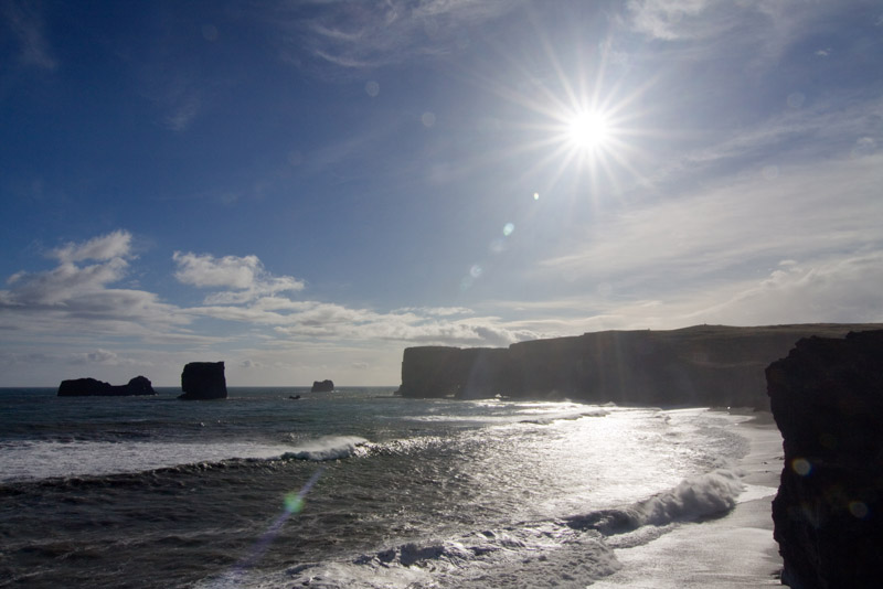 Nach einer kurzen Rast fahre ich weiter zum Kap Dyrholaey. Dort hat man einen tollen Blick auf den schwarzen Strand, die Klippen und die Reynisdranger, spitze Basaltsäulen im Meer.