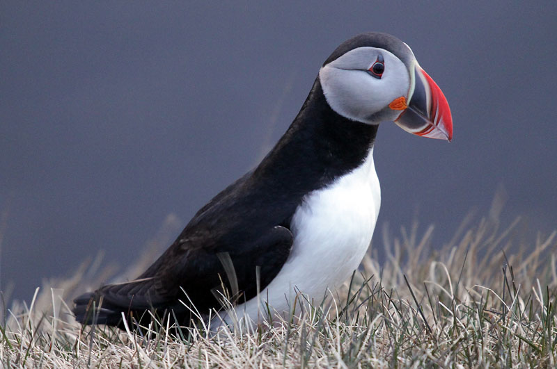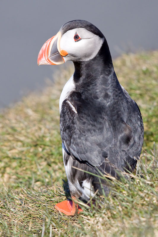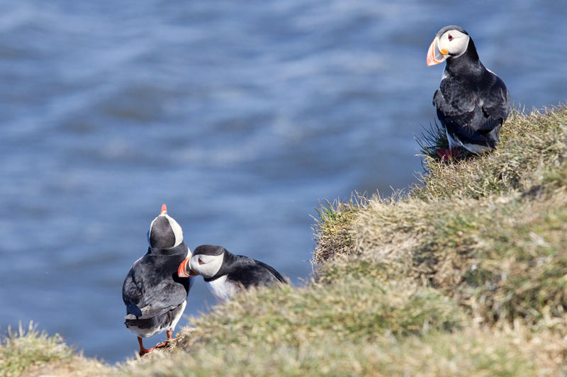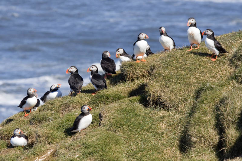 Am Felsen angekommen müssen wir zuerst über eine steile Sanddüne hinaufklettern, dann ist der anstrengende Teil des Ausflugs geschafft und wir folgen dem Guide an der Steilküste entlang. Vor dem Ausflug hat vermutlich jeder der Urlauber, mich eingeschlossen, den armen Guide nach den Puffins gefragt, und er war sich nicht sicher, ob wir welche sehen würden. Aber jetzt sind wir alle froh und der Guide sichtlich erleichtert, denn Heerscharen von Puffins bevölkern die Klippen. Ich kann mir nicht helfen, ich finde sie einfach zu drollig.