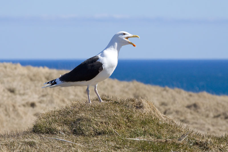 Als jeder halbwegs „puffin-satt“ ist, schafft es der Guide dann auch, uns für die anderen Vögel zu begeistern. Diese arme Möwenmama ahnt schon böses: