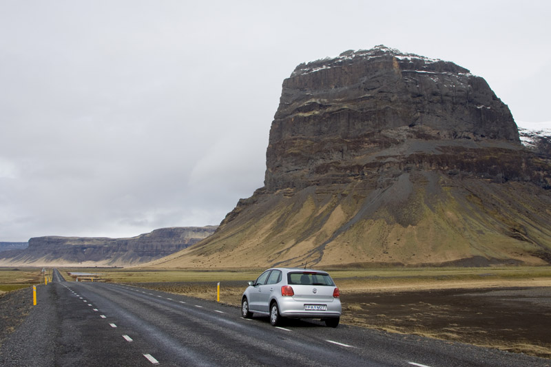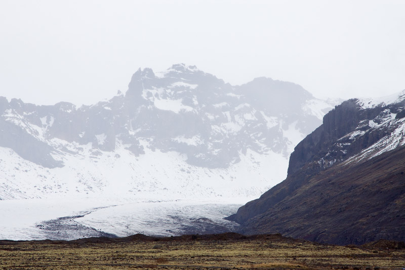 Dienstag, 7.5.13Als ich heute morgen aufwache, hat sich zwar die Sintflut ausgetobt, aber es tröpfelt immer noch und die Wolken hängen tief zwischen den Bergen. Eigentlich will ich heute vormittag eine Wanderung im Skaftafell Nationalpark unternehmen, aber die Aussicht, mich vier Stunden lang von sechs Grad kaltem Regen durchnässen zu lassen, treibt mich nicht gerade freudig aus dem Bett. Ich überlege hin und her und beschließe dann, den Skaftafell Nationalpark ausfallen zu lassen und statt dessen gemütlich mit vielen Fotostopps die etwa 350 km zurück nach Reykjavik zu fahren. Das einzige Ziel, das ich heute auf jeden Fall besuchen will, ist der Seljalandsfoss, aber dort will ich sowieso erst nachmittags ankommen, wenn die Sonne nicht mehr hinter dem Foss steht, also habe ich viel Zeit und mache mich schließlich langsam auf den Weg.