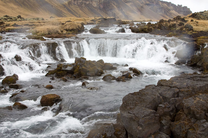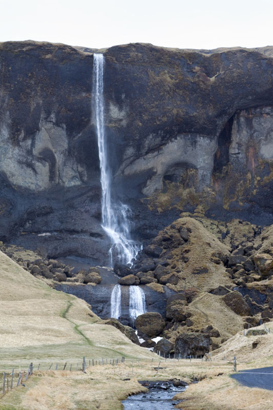 Auf der Weiterfahrt wechselt das Wetter fast alle paar Kilometer. Meist ist es bedeckt, ab und zu kommt die Sonne heraus, manchmal gibt es heftige Regenschauer. Ich folge der Ringstraße Richtung Westen, halte ab und zu an und fotografiere Felsen und Wasserfälle. Auch die "normale" Landschaft links und rechts der Straße ist sehenswert, da braucht es eigentlich keinen Svartifoss zum Glücklichsein.