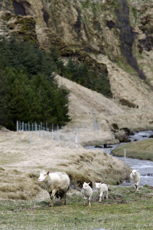 Weil es erst Mittag ist, vertreibe ich mir die Weiterfahrt wieder mit kurzen und ausgedehnteren Fotostopps: Erst kommen mir die vierbeinigen wolligen Bewohner Islands vor die Linse.