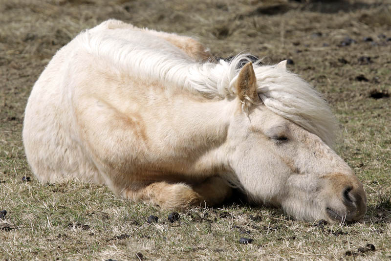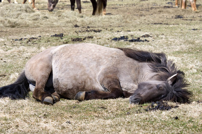 Viele liegen entspannt im Gras und schlafen - wenn auch manchmal mit einer ordentlichen Ladung Pferdeäpfeln direkt vor den Nüstern.