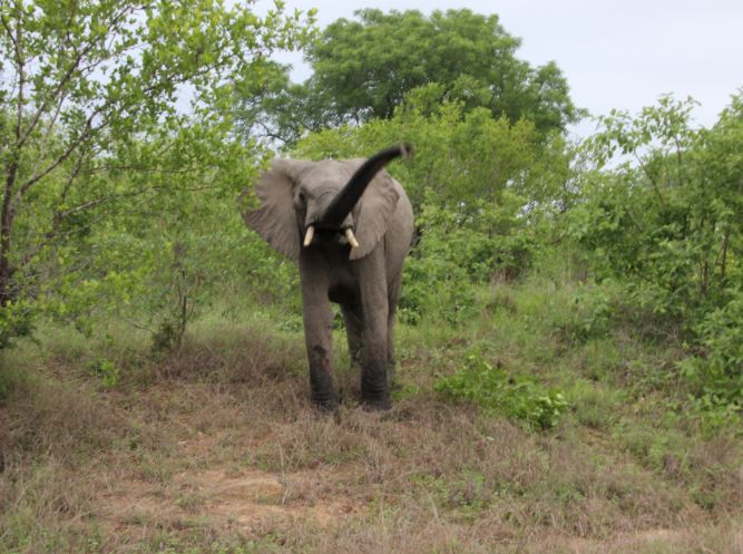 Der Morning Drive hat sich wirklich gelohnt! Aber so einen etwas "angesäuerten" Elefantenbullen möchte ich nicht zu nahe kommen. Danach müsste bestimmt meine Hose in die Wäsche...