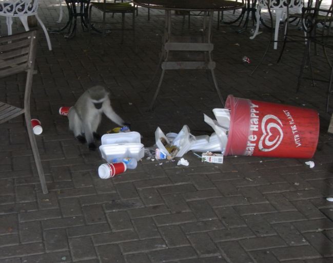 Bei Affen muss man immer sehr aufpassen, obwohl ich die Meerkatzen immer als die weniger aggressiven angesehen habe. Aber wie in vielen Fällen ist der Mensch nicht unschuldig: durch das Füttern nimmt zB der Pavian den Menschen als rangniederen war, sd sie ganz schön rabiat werden. Im Royal Natal Park haben wir beobachtet, wie geschickt ein Pavian den Kofferraum geöffnet und zwei Plastiktaschen entwendet hat -wir standen zu weit weg, um einzugreifen. Auch ein anderes negatives Affenerlebnis hatten wir dort- ich zitiere mal aus meinem RB: