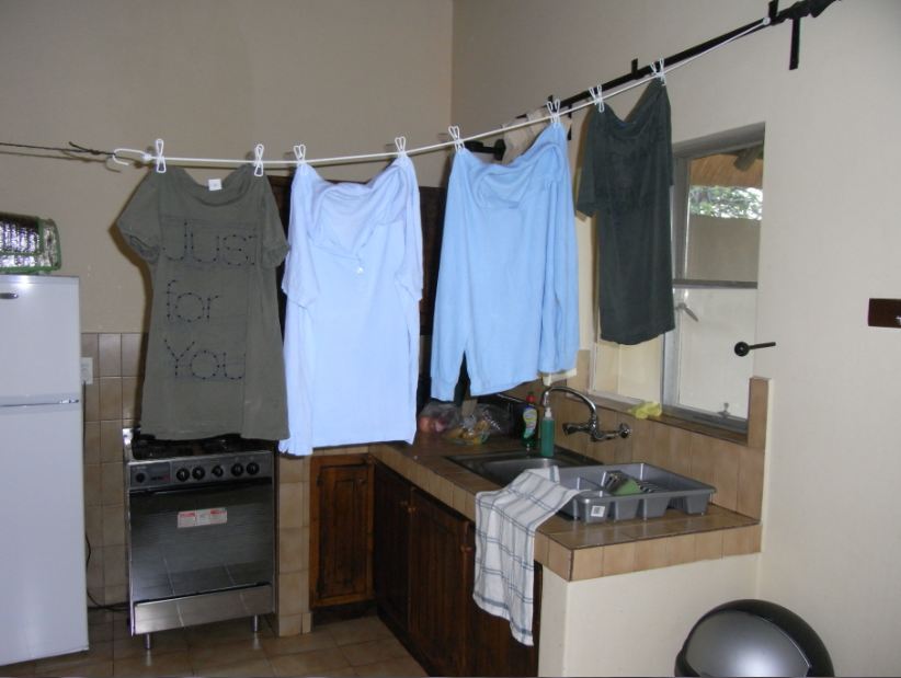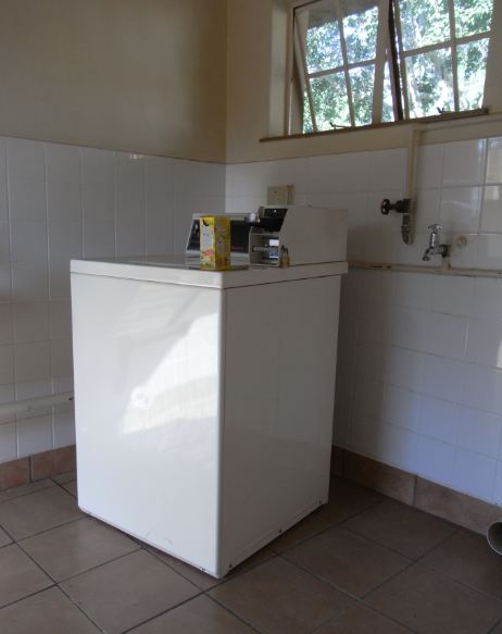 Als mein Mann kommt fällt ihm auch nichts weiter ein, als alle Knöpfe zu drücken, die Stecker und die Wasserzufuhr zu überprüfen, dann muss auch er kapitulieren. Die Rangerin kommt mit der Meldung zurück, dass ich neue afrikanische Rand verwenden müsse. Hm, angesichts eines großen Zettels an der Wand mit eben dieser Info hatte ich das bereits getan. Da sie sehr freundlich ist, gebe ich ihr für ihre Bemühungen ein kleines Trinkgeld, über das sie sich sehr freut. Mein Mann und ich sammeln derweil die gut mit Waschpulver bestreute Wäsche (hätte ich mal die Bedienungsanleitung befolgt und das Waschpulver zuerst in die Maschine getan und die Wäsche obenauf gelegt!) wieder aus der Maschine. Ich sehe mich schon Handwäsche machen. Angesichts dieser Vorstellung frage ich die Rangerin, die die ganze Zeit über einen Tisch gebeugt neben uns steht und uns beobachtet, ob es hier vielleicht noch irgendwo einen "Waschsalon" gibt. Freudestrahlend antwortet sie "Ja". Wir haben zwar wenig Hoffnung, dort eine funktionierende Waschmaschine vor zu finden, erkundigen uns aber trotzdem nach dem Weg. Da wir aus ihren Erläuterungen nicht schlau werden und immer wieder nachfragen, geht sie schließlich mit uns mit und bringt uns persönlich zu dem anderen Waschraum. Dort finden wir tatsächlich eine funktionierende Waschmaschine vor und ich bin der Handwäsche nochmal entronnen. Zu unserer großen Freude funktionierte auch der Wäschetrockner.