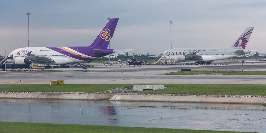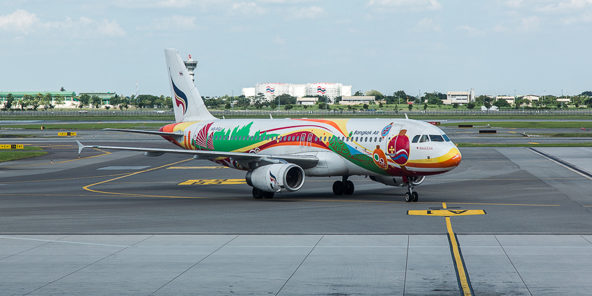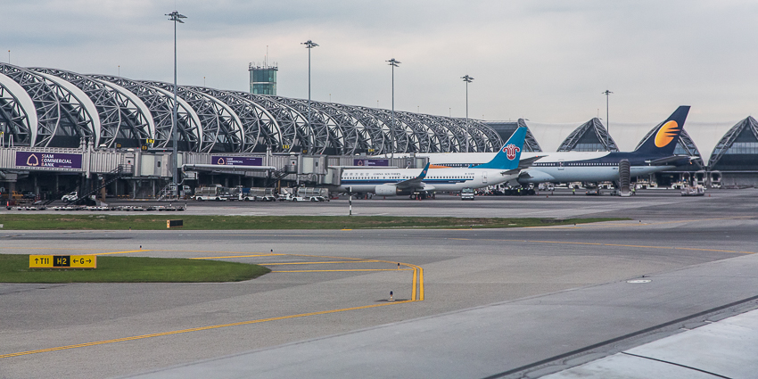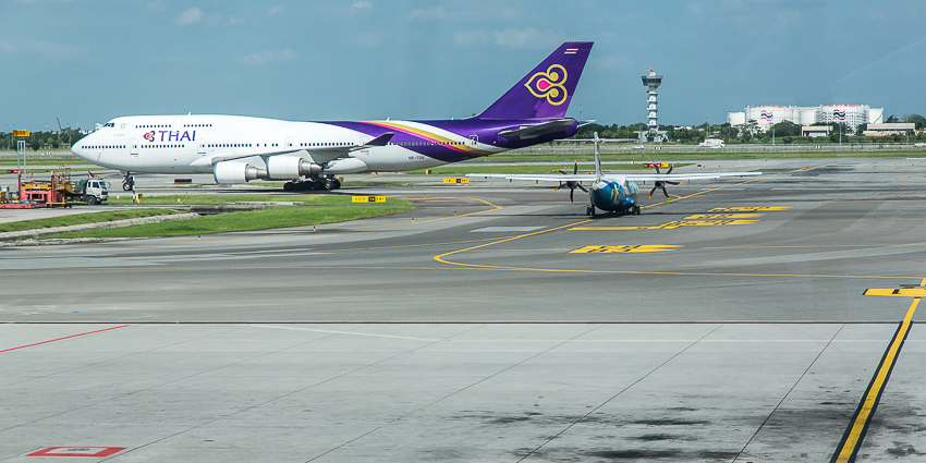 Danach ging es wieder auf’s Zimmer um die letzten drei Sachen zu packen und den erforderlichen Papierkram für den heutigen Flug zurechtzulegen. Um 11.20 checkten wir dann endgültig aus - die 5 Dosen Cola von gestern Abend hatten übrigens knapp über 1000 Baht gekostet !!!! Pünktlich um 11.30 stand unserer Fahrer vor der Tür. Die Fahrt bis zum Flughafen dauerte rund eine 3/4 Stunde, dann wurden wir am National Terminal entlassen und verabschiedeten uns von Bangkok.