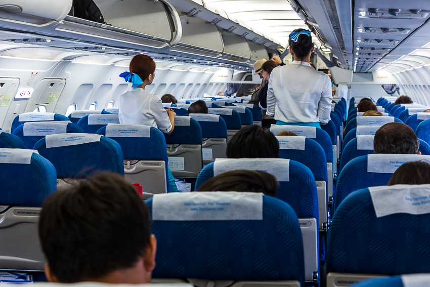 Das Einchecken verlief dann ohne weitere Probleme und auch der Flug ging fast pünktlich um 17.05 los - na, ja, um ehrlich zu sein waren es nach der zweiten Verspätung insgesamt knapp 2,5 Stunden Verzögerung, ursprünglich war 14.50 angesetzt. Die Zeit verbrachten wir mit einem kurzen aber „relativ“ teuren Besuch bei Mc Donald’s (Paul hatte Hunger, ein Cheeseburger Deluxe + ein Cola für 160 Baht) und einem Kleineinkauf bei Krispy Cream Doughnuts. Für 425 Baht wanderten insgesamt 8 Donuts über den Tresen. Als es dann endlich so weit war, langte ein kurzer Hüpfer von einer Stunde - dann waren wir auch schon in Chiang Mai, unserem Ziel für die nächste Woche. Der Service an Board von Bangkok Airlines war gut, es gab sogar ein warmes Essen (Hühnchen mit Reis). Ansonsten waren wir auch heute nach der Ankunft wieder alle vollzählig: Frau, Kinder und die Koffer.