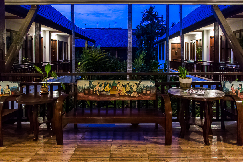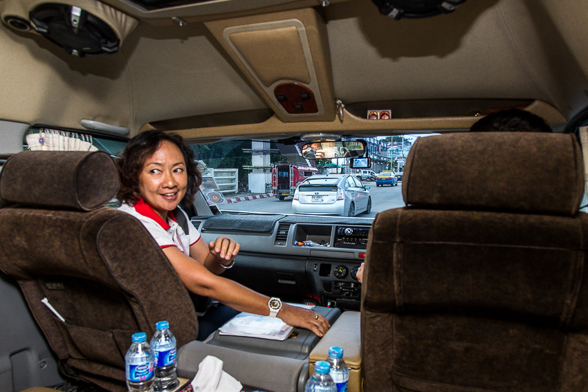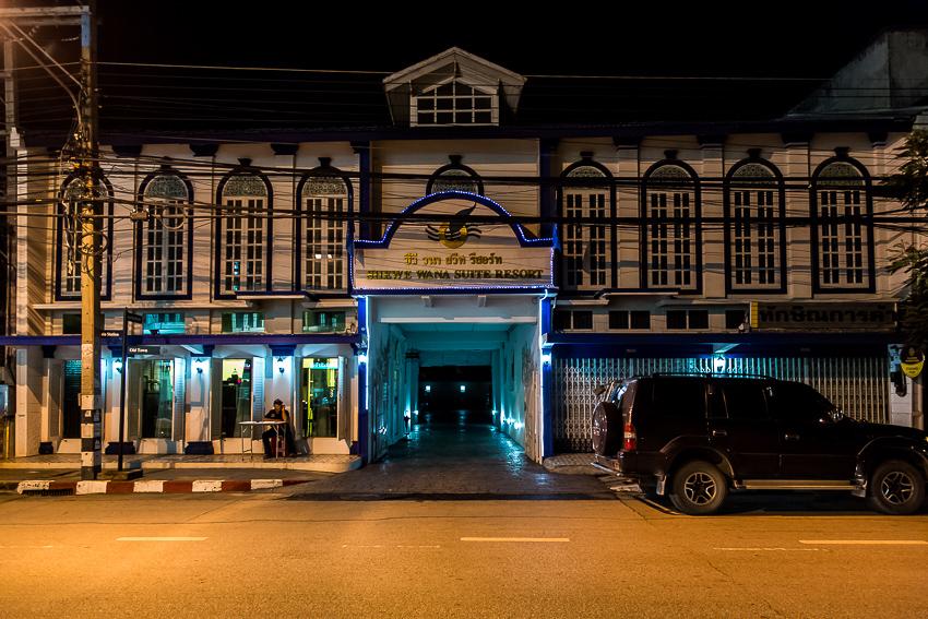 Und wie bereits in Bangkok erwarteten uns von Tischler- Reisen der Fahrer sowie unsere Reiseleiterin für die nächsten 8 Tage mit unserem Namensschild. Wir begrüßten uns herzlichst und stellten uns kurz vor. Ihr Name war Toom, sie hatte Deutsch studiert und lebt in Chiang Mai. Dann liefen wir die wenigen Meter bis zu unserem Gefährt für die nächsten 8 Tage. Ein relativ „großer“, gemütlicher Kleinbus. Die Fahrt bis zum Hotel dauerte ca. 20 weitere Minuten, dann checkten wir in unserer Herberge für die nächste Nacht ein - dem „Shewe Wana Suite Resort“. Hier würden wir am Schluss unserer Rundreise noch einmal zwei Nächte verbringen. Von der Art her ganz anders als das Anantara River Side in Bangkok, aber es hatte mitten in der Stadt seinen eigenen Charme.