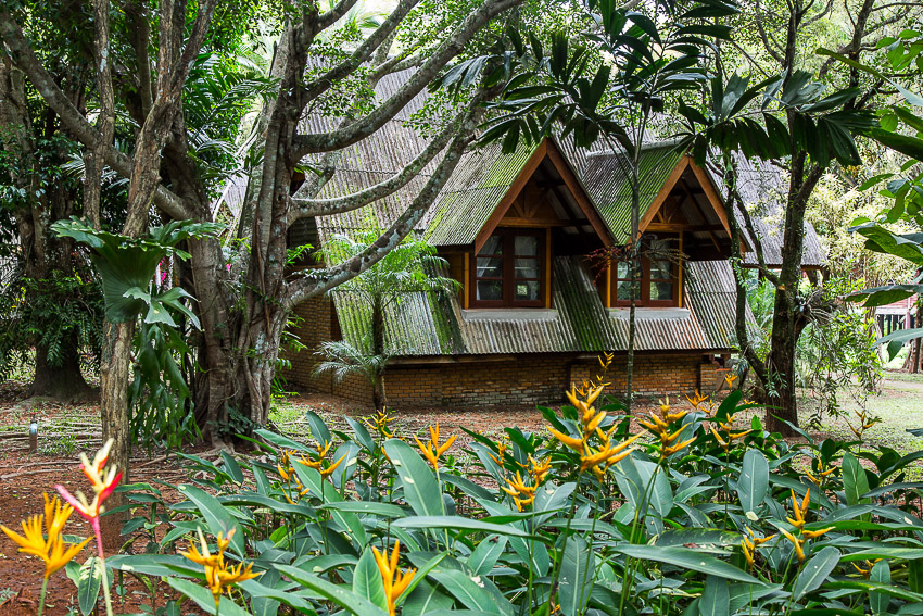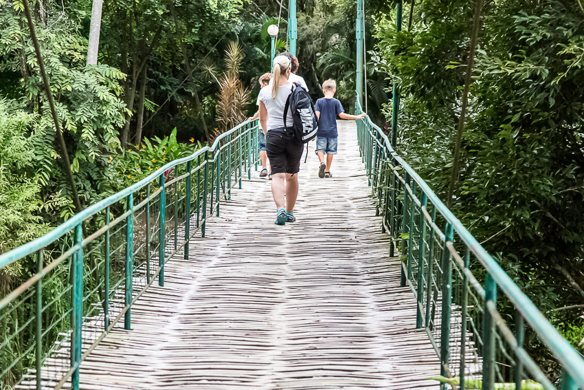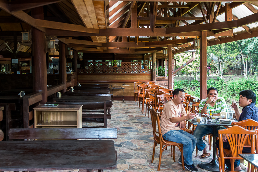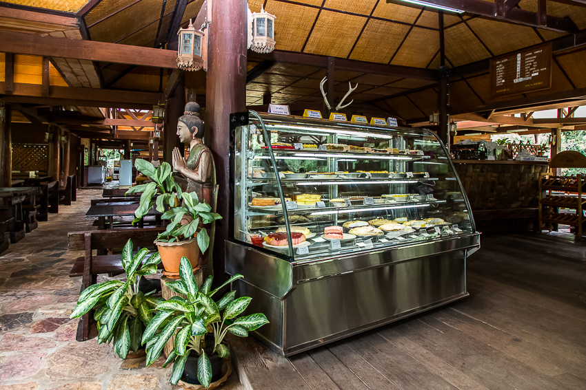 Nach einer weiteren Stunde Fahrt mit unserem Bus kamen wir an dem schön gelegenen  „Charin Garden Resort“ an, direkt an einem kleinen Fluss gelegen. Toom bestellte für uns verschiedene thailändische Köstlichkeiten, von süß/ sauer bis scharf. Zum Abschluss gab es noch verschiedene Kuchensorten, für die  - laut Toom - das Lokal bekannt ist. Danach waren wir alle pappsatt - keine Ahnung wie da heute noch überhaupt ein Happen den Weg in den Magen finden soll. Fazit: das mit Abstand beste thailändische Essen, das wir bisher hatten. Wir schauten uns dann noch etwas in der schön angelegten Anlage um, es gab zwei Vogelvolieren und man konnte über eine kleine Hängebrücke auf die andere Seite des Flusses laufen. Dort gab es sehr schön angelegte Bungalows die man mieten konnte. Nachdem ich noch ein paar Blümchen fotografiert hatte, ging es zurück zum Bus.
