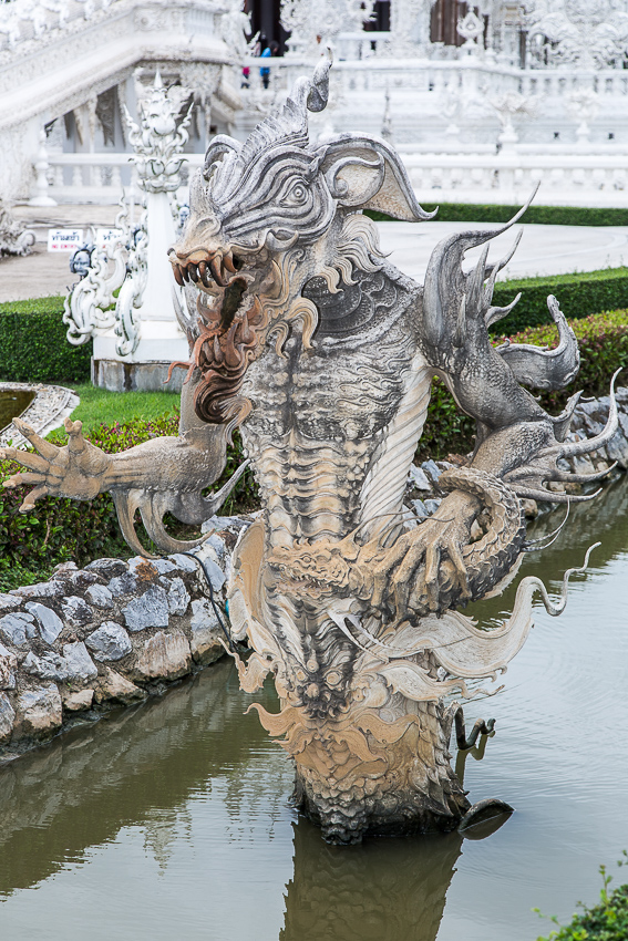 Die weitere Fahrt führte uns zum „Wat Rong Khun“. Ein faszinierend angelegter Tempel des Künstlers „Chalermchai Kositpipat“. Wir blieben ca. 1,5 Stunden und schauten uns die faszinierenden Arbeiten des heute 60 jährigen Künstlers an. Einige der Skulpturen - fotografieren der Meisterwerke war leider verboten - hätten sich auf bei uns zu Hause mit Sicherheit gut gemacht.