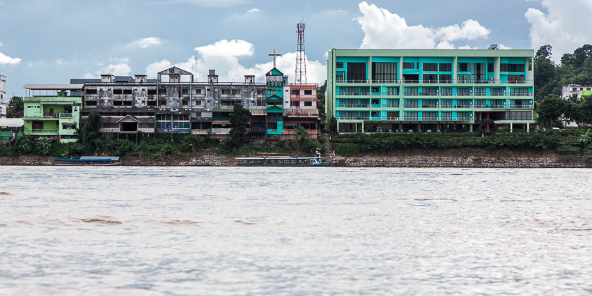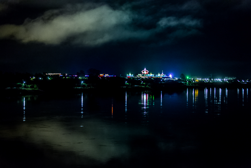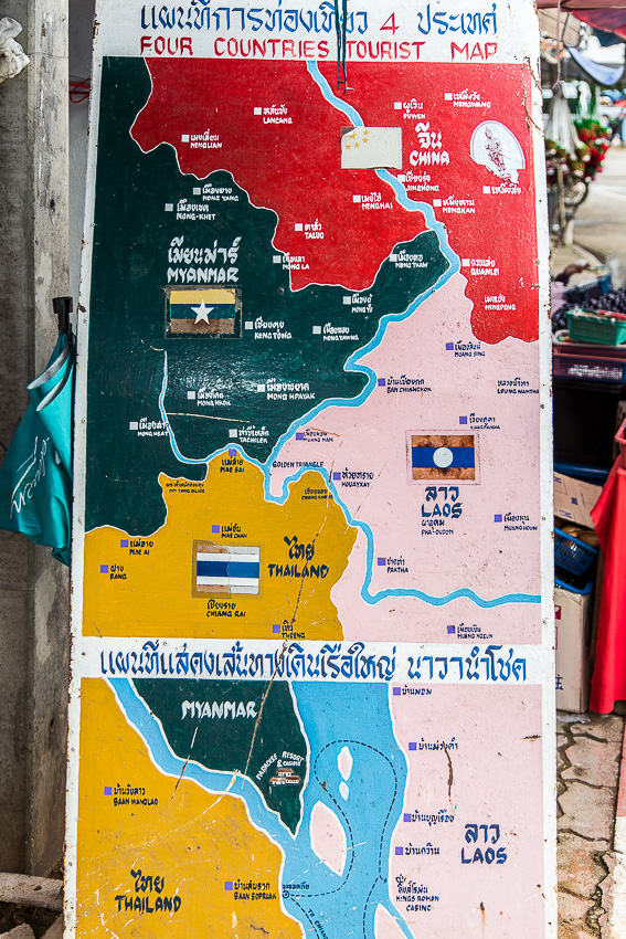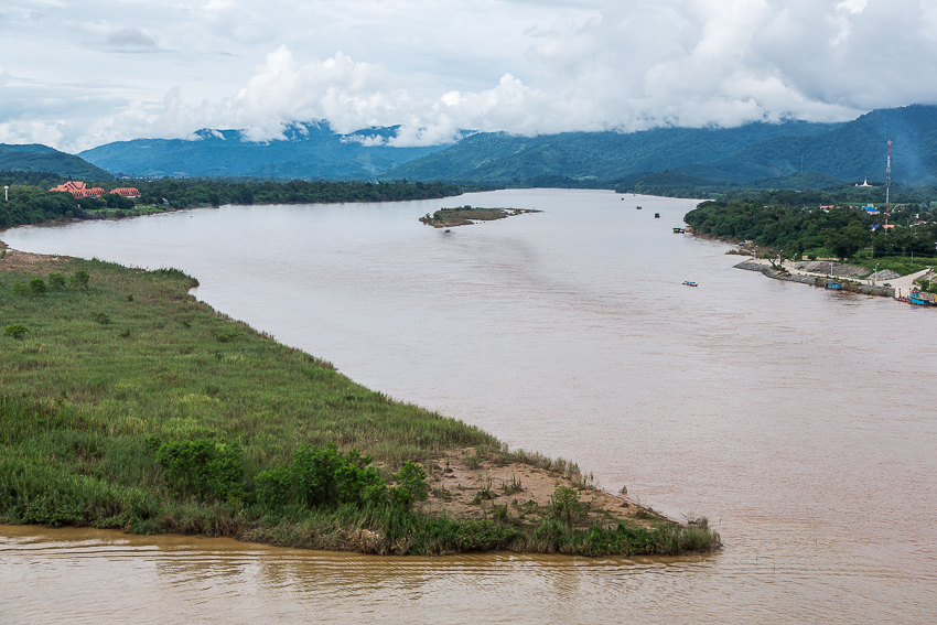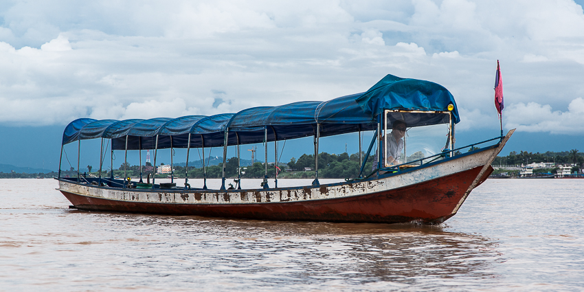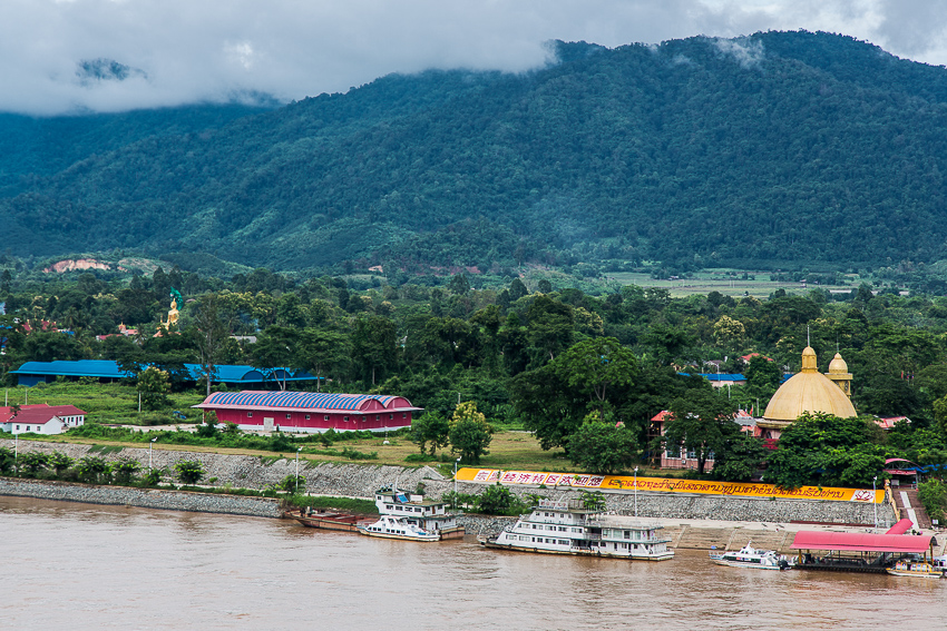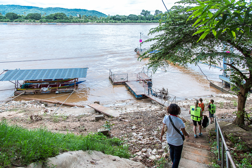 Die letzte Fahrt des heutigen Tages führte uns dann nach „Chiang Saen“. Mit dem Bus fuhren wir zum schönsten Aussichtspunkt der Stadt und liefen dann von dort an zwei kleinen Tempeln vorbei zum örtlichen „Hafen“. Von dort aus unternahmen wir eine ca. halbstündige Fahrt mit einem LongTailBoat auf dem berühmten Mekong Fluss im goldenen Dreieck. Hier treffen sich die Grenzen der Länder Thailand, Laos und Myanmar und bis ins letzte Jahrhundert wurde hier mit Opium gehandelt. Mittlerweile steht, zumindest in Thailand, hierauf die Todesstrafe.