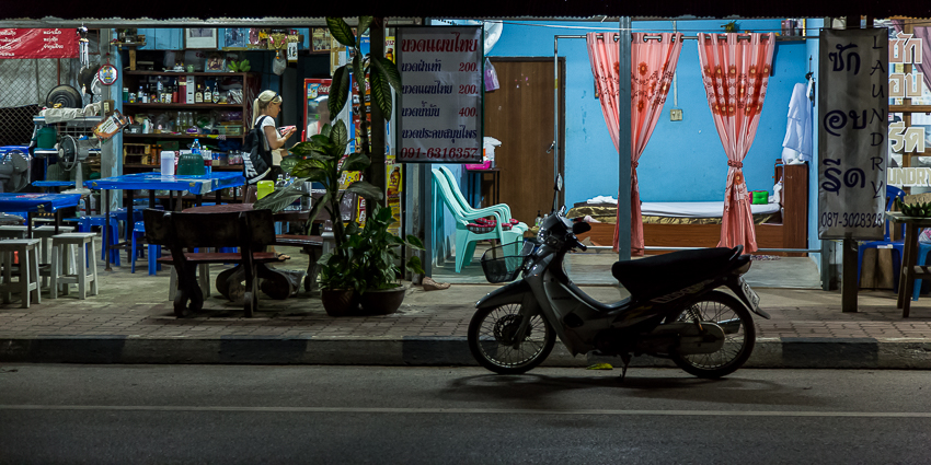 Wir checkten ein und verabschiedeten uns von Toom. Nachdem die beiden Zimmer bezogen waren, Birgit verbrachte die Nacht mit Tom - ich hatten unsere Duracel Paul als Gast - liefen wir noch einige Meter die Hauptstraße entlang. Zu einem Besuch des Nachtmarktes hatten wir nach dem langen Tag alle keine Lust mehr. So blieb es bei einem leckeren Mövenpick Eis für Paul und mich (kostete im "Straßenverkauf“ den wahnsinnigen Preis von 20 Baht, hätte in good old Germany“ das 5-6 fache gekostet).