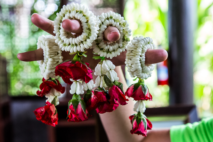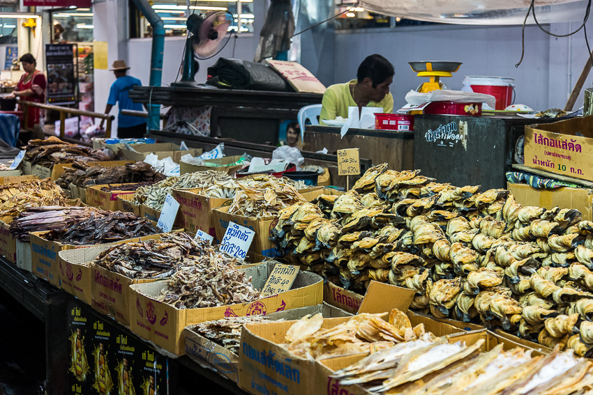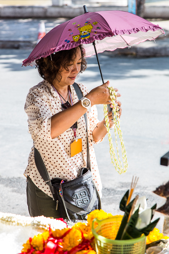 Letzter Tag in Chiang Mai, ein letztes Mal wurden wir von Toom und No abgeholt. Wie immer standen beide überpünktlich am Hotelparkplatz und warteten schon auf uns. Die erste Fahrt führte uns zum Blumenmarkt und dauerte nicht länger als 10 Minuten. Der Blumenmarkt ist eigentlich kein reiner Blumenmarkt, hier gibt es auch alles andere - von Kleidung über Fleisch bis hin zu Gewürzen. In der Gewürzabteilung kauften wir dann eine Packung scharfe Chilischoten sowie ein etwas milderes Chilipulver. Außerdem noch 2 Packungen Goji Beeren - die kannte ich durch einen Arbeitskollegen und ich wollte ihm eine kleine Packung aus Thailand mitbringen. Toom kaufte für jeden von uns noch eine kleine Blumenkette zum Abschied.