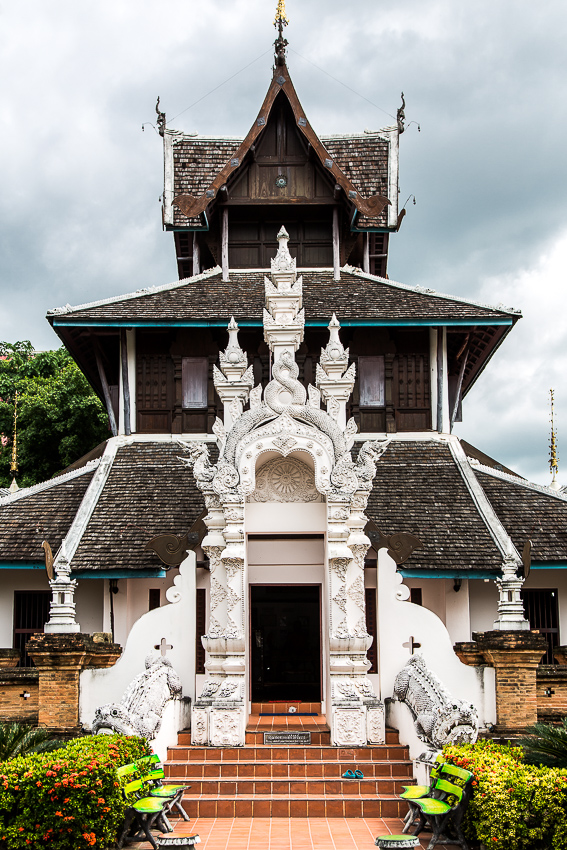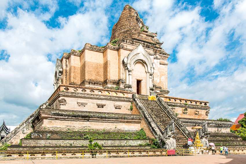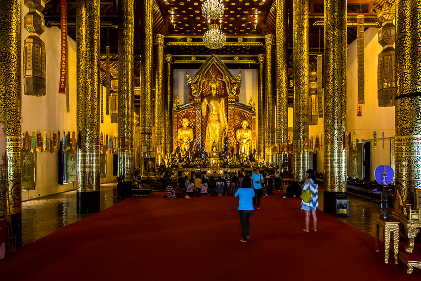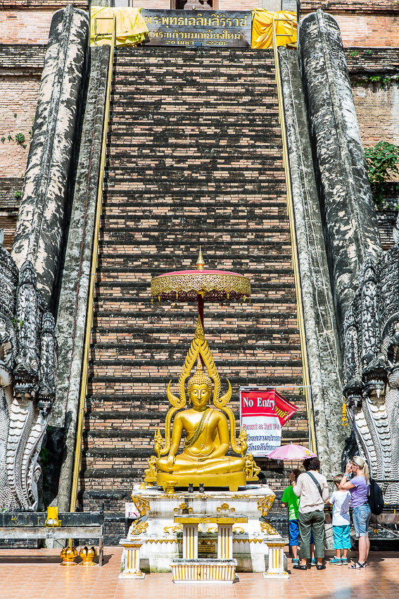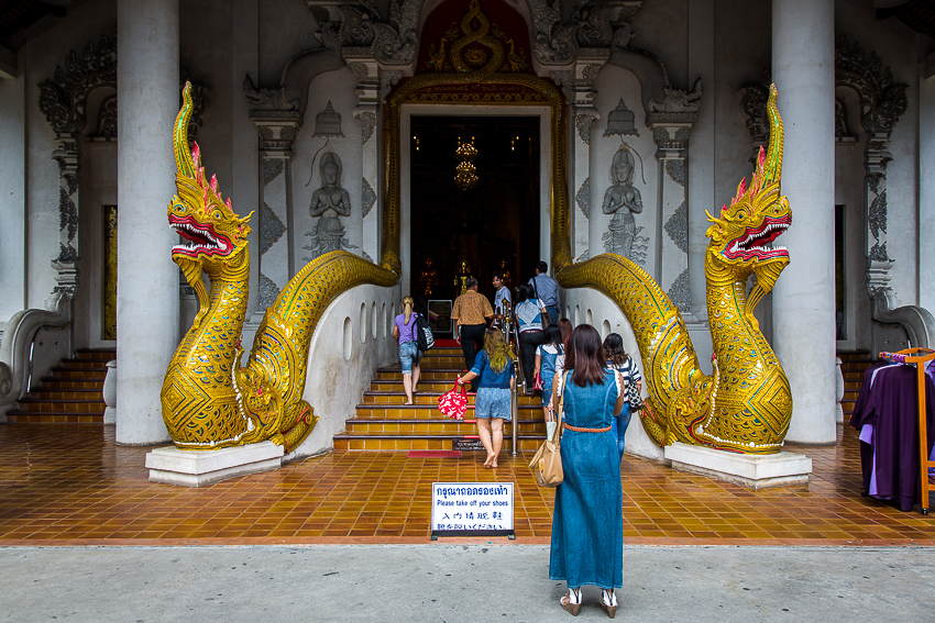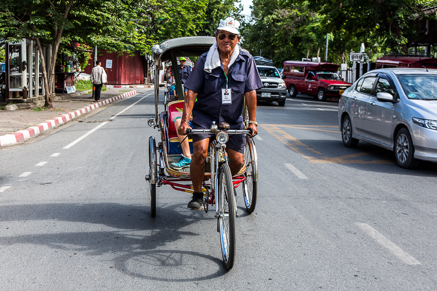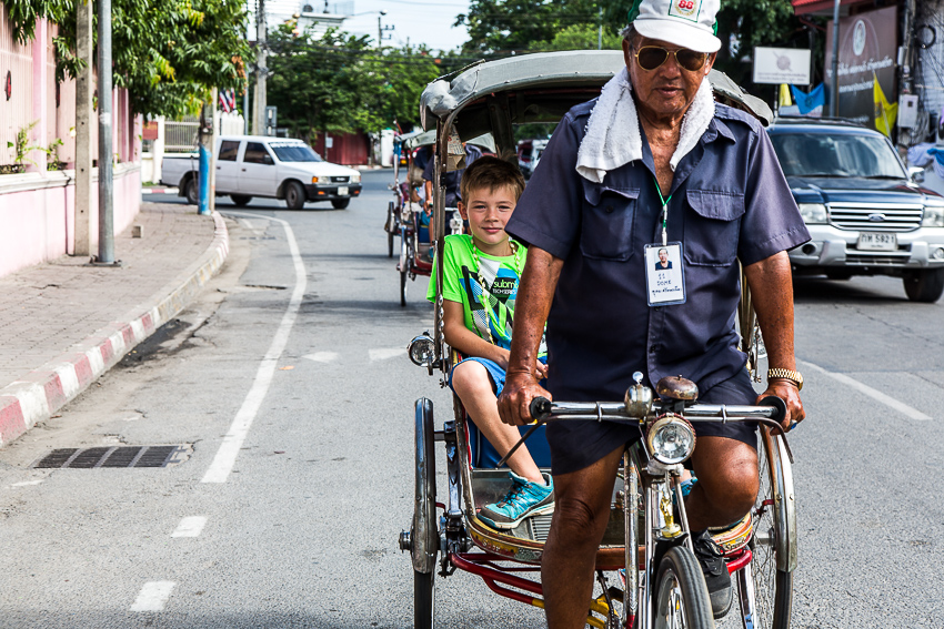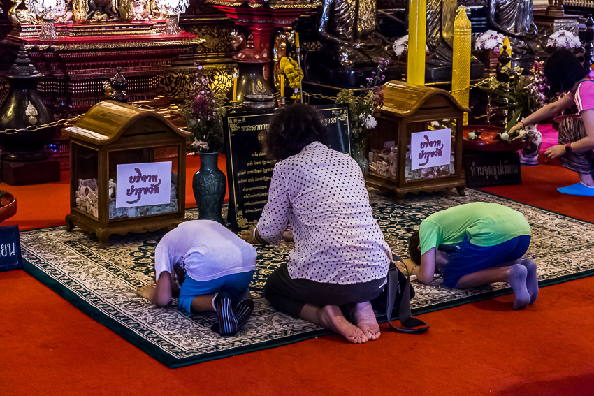 Nach einer halben Stunde verließen wir den Blumenmarkt. Toom hatte vier Rikschas organisiert, die uns zu „ihrem“ Lieblingstempel fuhren. Da Paul nicht alleine fahren wollte und somit eine Rikscha frei war, fuhr Toom kurzentschlossen mit. Die Fahrt dauerte vielleicht 20 Minuten, dann waren wir am "Wat Chedi Luang" angekommen. Toom betete wieder mit den Kindern vor einem Buddha und ließ sich sogar zusammen mit Paul von einem anwesenden Mönch „weihen“. Sie erklärte wieder allerhand (während ich mit fotografieren beschäftigt war) bis es irgendwann um kurz nach 10.00 soweit war: unsere letzte gemeinsame Fahrt stand an. Es ging zum Chiang Mai International Airport. So anstrengend es die letzte Woche über war, so sehr wir uns schon seit Tagen auf Koh Samui freuten - es stellte sich doch eine gewisse Art Wehmut ein.