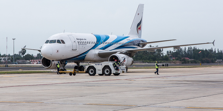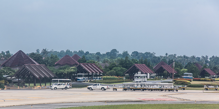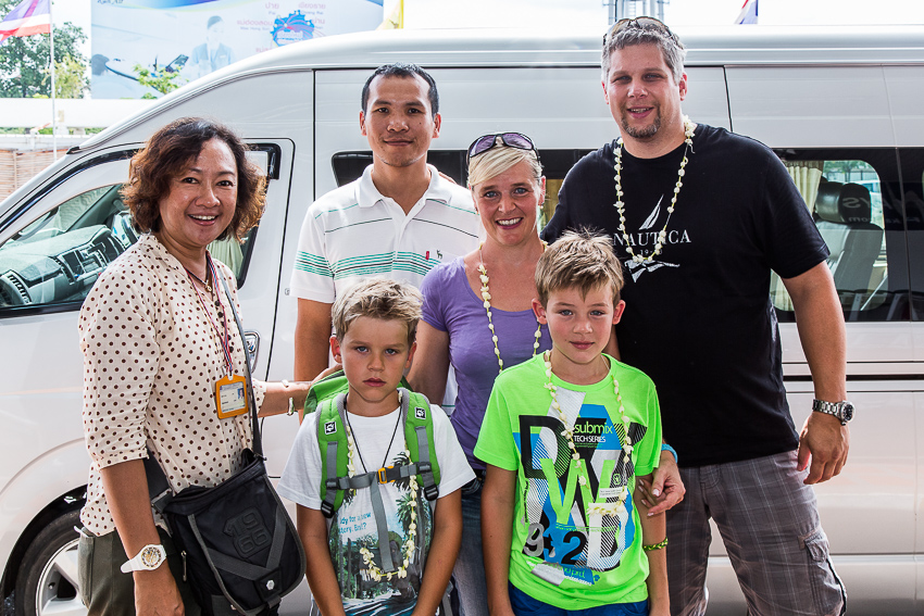 Nach 10 Minuten Fahrt waren wir auch schon da, machten noch schnell mit Toom und No ein Gruppenfoto und „checkten“ dann am Flughafen ein. Toom begleitete uns noch bis zur „Bangkok Airways Schweineklasse Lounge“ - ja die gibt es da tatsächlich. Selbst für den normalen Touriflieger haben die eine Lounge eingerichtet, die schon bald an die Lufthansa Business Lounge erinnert - na ja, fast. Hier verbrachten wir noch die nächsten 1,5 Stunden bis zum Boarding - dieses Mal sogar pünktlich. Der Flug bis nach Koh Samui verlief ereignislos und dauerte rund 1,5 Stunden. Nachdem wir die Einreiseformalitäten erledigt hatten - es gab inländisch nämlich keine - organisierten wir uns für 360 Baht ein großes Sammeltaxi welches uns zu unserem Hotel für die nächsten 7 Nächte brachte - dem Anantara Lawana Beach Resort. Während wir auf das Taxi warteten, ärgerten wir uns noch über eine „verlorene“ Rolle eines unserer 3 Koffer. Nach all den Jahren die uns unsere Koffer bisher begleitet haben, der bisher erste „Ausfall“.