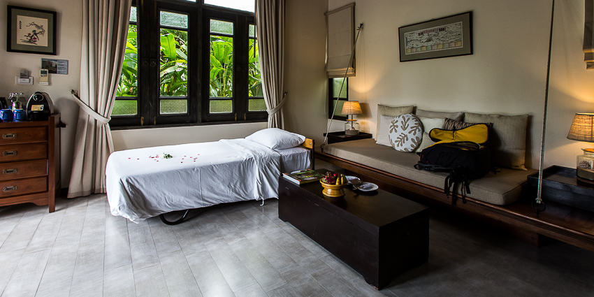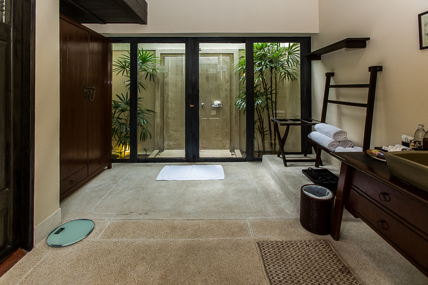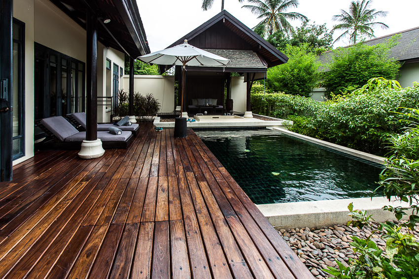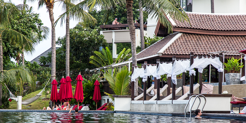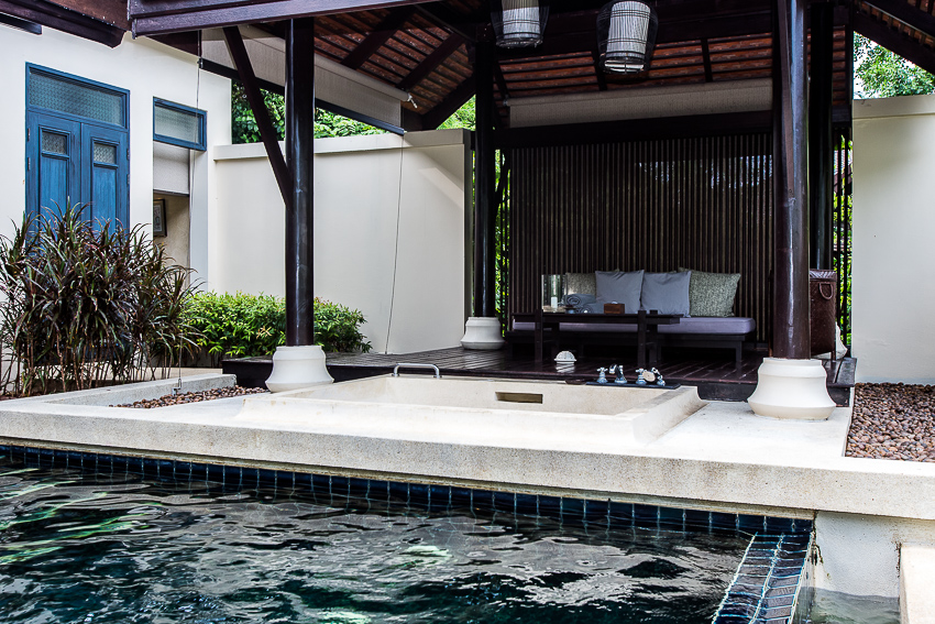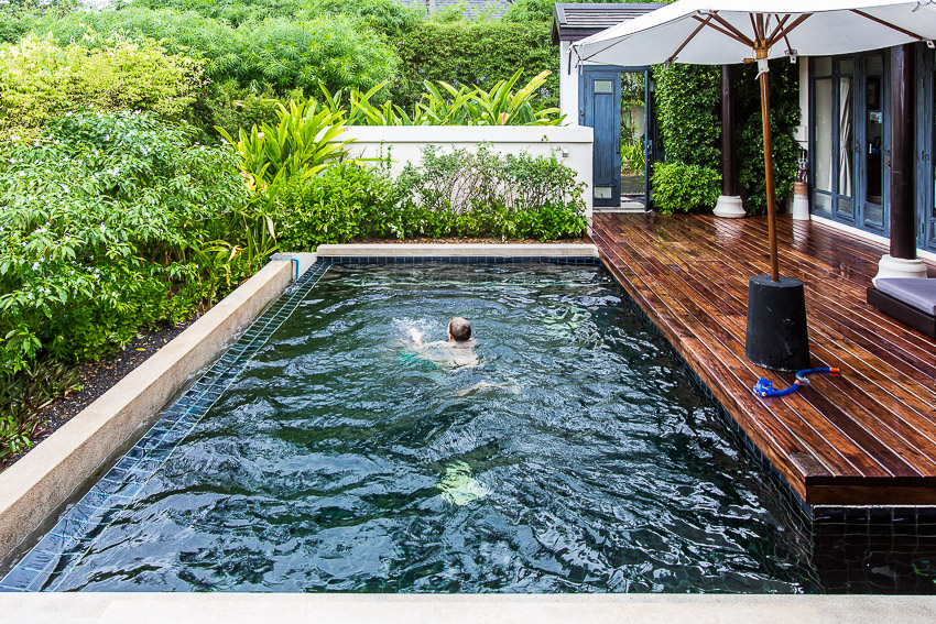 Um kurz vor 15.00 war alles erledigt und wir bezogen unsere Pool Villa (Zimmer 104). Die Kinder waren begeistert und Paul sprang gleich mit seinen Klamotten bis zum Bauchnabel in den eigenen Pool. Während wir uns häuslich einrichteten, planschten und spielten die Jungs im Pool. Gegen 16.00 wollte dann der hoteleigene Strand erkundet werden. Dort schnorchelten und spielten Tom und Paul bis ca. 17.30 dann ging es zurück ins „Zimmer“. Doch auch hier ging es gleich wieder für eine Stunde in den Pool.
