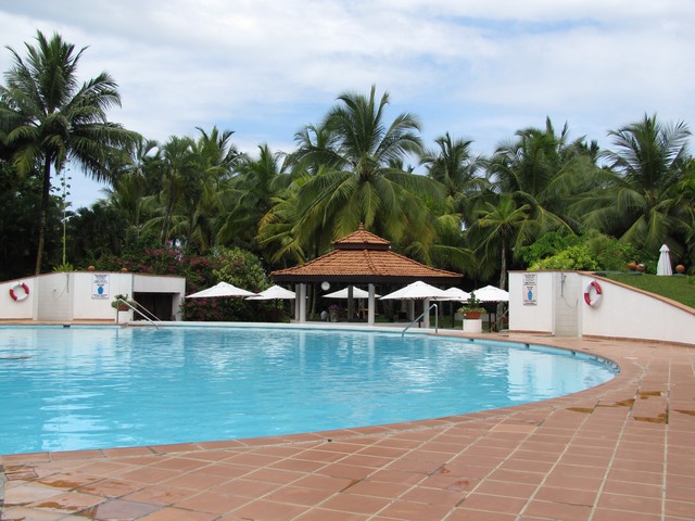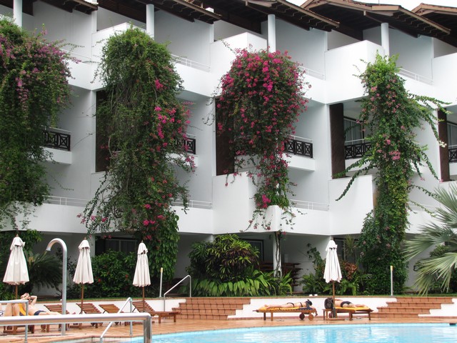 Der Wettergott meint es gut mit uns nach dem Frühstück hört es auf zu regnen, wir legen uns an den Pool. Das ist richtig edel hier: man bekommt nicht nur ein Polster und ein Handtuch sondern 2 Handtücher und noch ein Kissen für den Kopf, wirklich first class hier und der Pool ist riesig.