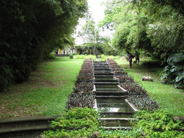 Nach einer Weile wird es sogar sonnig und wir beschließen das gute Wetter für einen Ausflug zu nutzen. Im Reiseführer stand als örtliche Attraktion das Wohnhaus samt Garten eines reichen Engländers, das heute Museum ist und besichtigt werden kann: der Brief Garden von Bewis Bawa (der Bruder eines berühmten Sri Lankischen Architekten) in Kalawila Village. Zufällig war im Flugmagazin der Lankan Airlines ein großer Artikel über diesen Garten, die Bilder sahen wundervoll aus, da wollen wir hin.