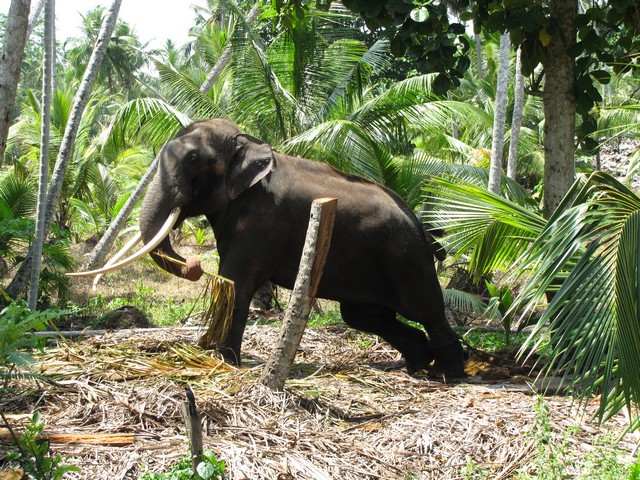 er stammt aus Thailand (daher die Zähne) und ist 12 Jahre alt, einer der Tempelelefanten für die Prozession in Kandy.