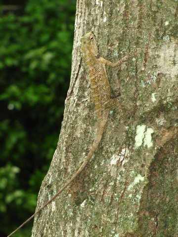 Ich hab euch ja versprochen dass es bis zum letzten Tag neue Tiere gibt, und tatsächlich hockt auf einer der Palmen auf der Liegewiese eine bisher nicht gesehene Echsenart: