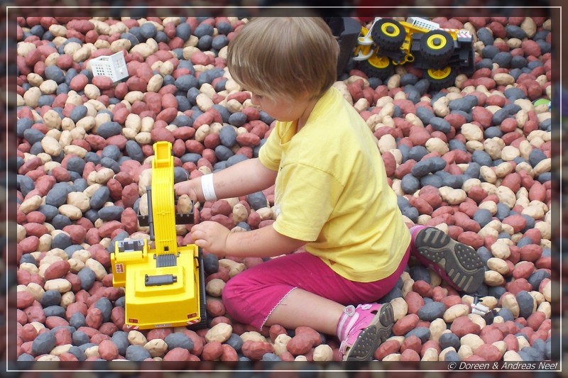 Gleich nach dem Eingang befand sich der Steinbruch, in dem kleine Bauarbeiter nach Herzenslust baggern, bohren und spielen konnten.