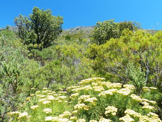 Ob wir tatsächlich oben am „Gipfel“ des Elandsbergs angekommen sind, ist für uns nicht ersichtlich, da es kein Schild gibt. Als der Weg hinab über eine Ebene auf einen weiteren Hügel führt, beschließen wir umzukehren. Erst kurz bevor wir wieder am Auto sind, kommt uns ein Jogger entgegen – nix für uns.