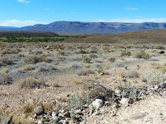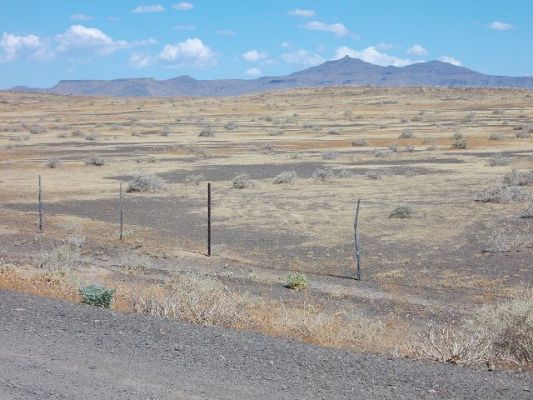 In Calvinia tanken wir. Das Örtchen macht auf den ersten Blick einen netten Eindruck. Die Fahrt auf der R 27 zieht sich, aber es gibt auch ein paar Vögel zu sehen: Strauße, Schildraben und viele Webervögelnester an den Leitungsmasten.
